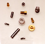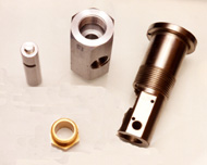 Left: Combination screw machine/CNC products. Above: Machine parts from Perry Screw Machine. |